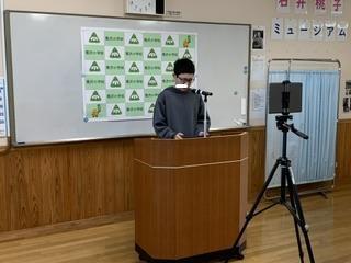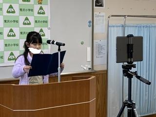 1月9日(火)から通常登校日が始まりました。全校集会はインフルエンザなどの感染症への対応もあり、オンラインで行いました。はじめに1月1日に発生した能登半島地震で被害にあわれた方にたいして黙とうをしました。校長先生からは、「今年の目標」についてお話がありました。目標は数字を入れると分かりやすいこと、できなかったら人のせいにしないで、改善するように努力をすることなど話されました。次に代表として、4年生と6年生それぞれ1名ずつ今年の抱負を発表しました。発熱などで数名が欠席しましたが、登校した子供たちは全校集会に集中して臨んでいました。今年も子供たちの活躍が楽しみです。