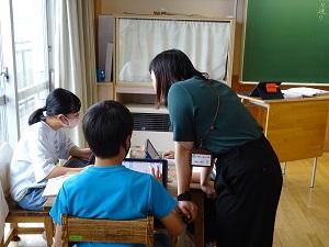 6月16日に6年生で研究授業がありました。国語の「風切るつばさ」の学習でした。タブレットを使っての意見の交流などICTを積極的に使用して展開していました。教職員による放課後の検討会では,授業について熱心な話合いが行われました。