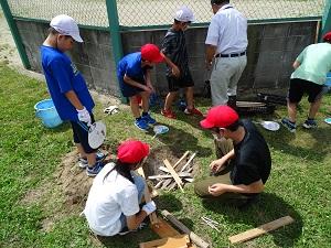 7月4日(火)に5年生が焚火の学習を行いました。7月12日(水)~14日(金)に行われる志津川合宿に向けて,様々な事前の学習に取り組んでいます。今日は野外炊飯の火起こし練習でした。「わ~マッチこわい~。」「えっなかなか火が着かない…」等々。やっぱり練習してよかったです。みるみる上達する姿が見られました。本番が楽しみです。