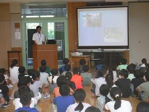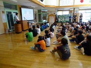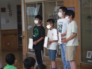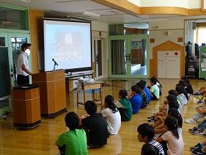 7月4日(火)に朝会がありました。まず校長先生より,学校の当番や係などの仕事を行っている子供たちの様子について触れ,プレゼンを用いて「一隅を照らす」のお話をしてもらいました。その後,先日の宮城県小学生陸上大会に出場した選手に記録賞が渡されました。みんな真剣にお話を聞いていました。