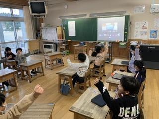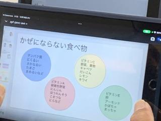 12月19日(火)の朝にオンラインで保健体育委員会による児童集会がありました。今回は「かぜの予防」について、自分たちで予防法を調べ、スライドにして発表を行いました。6年生は風邪の予防方法について、5年生は風邪に関するクイズをそれぞれ考えました。タブレットの操作もバッチリ。オンラインでの児童集会は緊張しながらも協力してやりとげました。