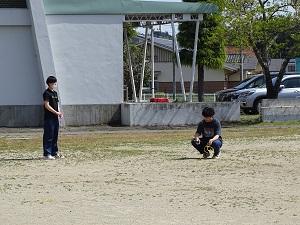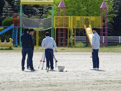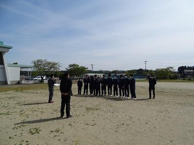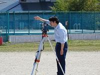 運動会の会場ですが,4月に迫桜高校エンジニア系列土木科の生徒の皆さんが地域貢献活動の一環として,測量をして作成したものです。測量をする実習で行っているとのことですが,測量をする機具を使用してのマーキングなのでとても本格的です。地域の皆さんに助けられていることを改めて感じます。