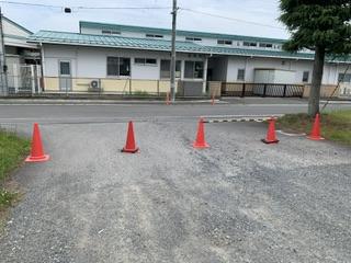 メールでもお知らせしましたが、児童の安全を考え、本日より当面の間、駐車場等の入り口に車両進入防止のためカラーコーン等を設置します。用事があるときには、一度外し、再度設置していただきますようよろしくお願いします。