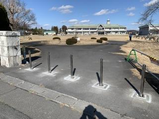 今週工事があり、不審車両の校地内侵入を防ぐために、出入り口に車止めポールが設置されました。